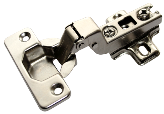 Данная петля применяется тогда, когда фасад нужно поместить внутри корпуса мебели, при всем этом петельная часть створки соприкасается с примыкающей стенкой корпуса. Петельная часть створки упирается торцом в соседнюю стенку. Основание такой петли имеет больший изгиб, по сравнению с полунакладной петлёй. Петля состоит из трёх основных частей: Основание%26mdash; часть, которая прикрепляется к монтажной планке. Для корректировки степени наложения створки (влево-вправо), на основании петли наличествует особый регулировочный винт, который у петель системы Slide-on заводится в паз монтажной планки. 4 шарнира с пружинным приспособлением %26mdash; подвижная часть. Чашка %26mdash; вкладывается в просверленное в створке отверстие.
