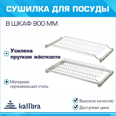 690-16N Сушка для посуды Калибра, 900мм (нержавеющая сталь, глубина 284-355, жесткий поддон, ДСП 16-18) — купить в Новосибирске по выгодной цене! Прочная и надежная мебельная фурнитура. Долговечность, удобство монтажа, отличное качество. Заказывайте в Мебельной Фабрике СИБИРЬ с доставкой по России!