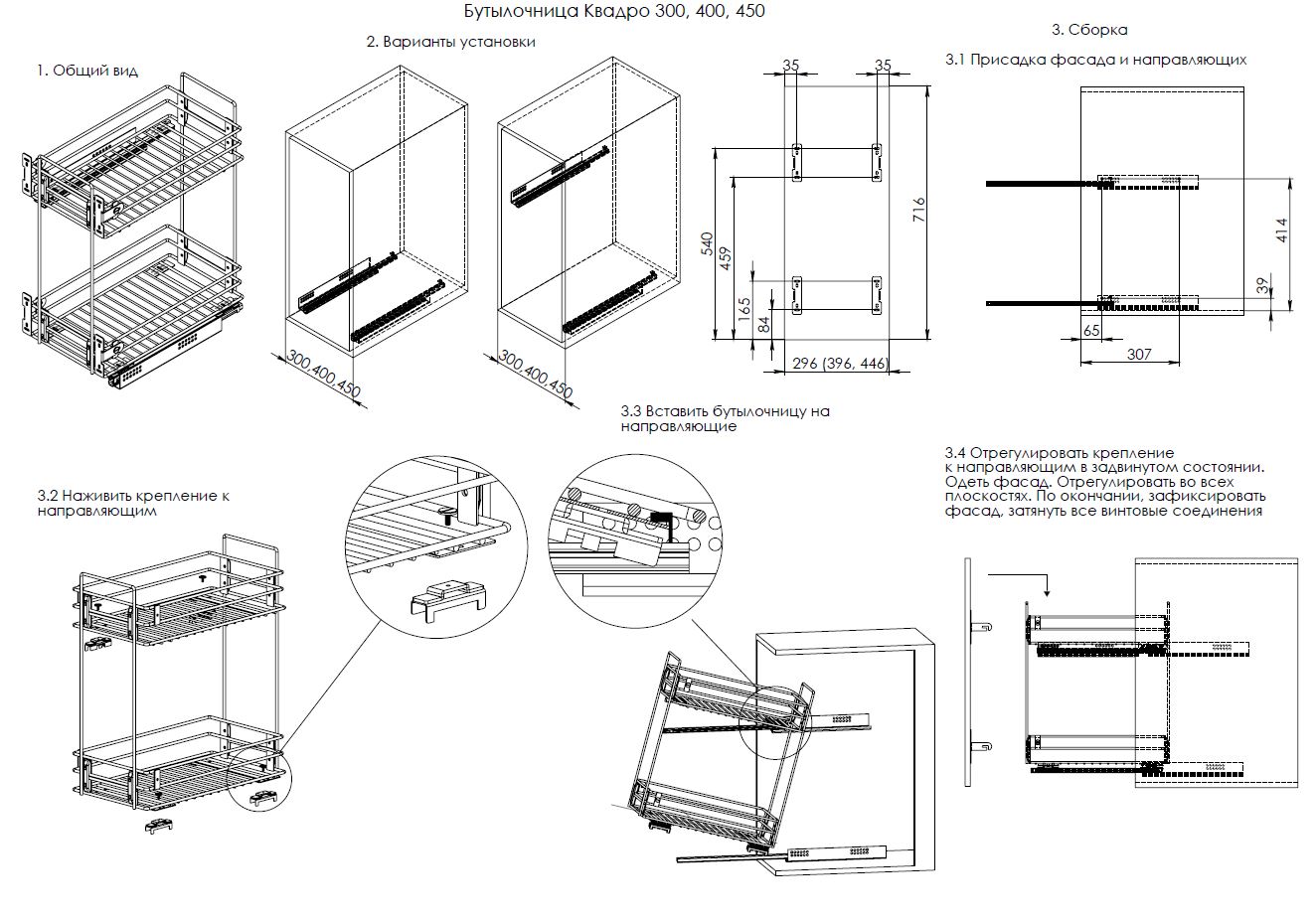 На ширину фасада: 300 мм
