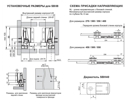 SBH40 – держатель рейлинга к задней стенке выдвижного мебельного ящика. Продукт предназначен для надёжной фиксации и установки круглого (SBR08) или прямоугольного (SBR09) рейлинга.