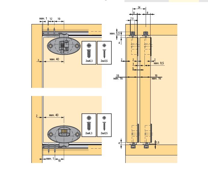 Регулировка дверей по высоте + / - 1 мм без инструмента