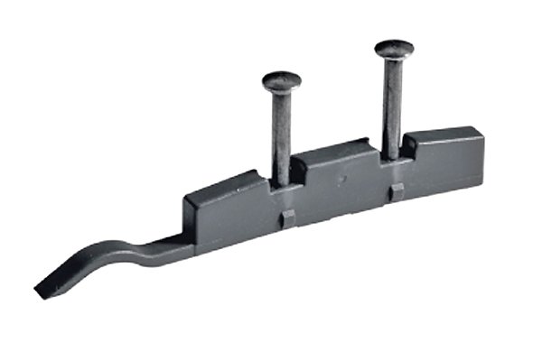 Концевой упор для правой и левой двери. На одну дверь требуется 2 механизма, крепится с помощью предустановленных гвоздей, пластмасса серого цвета