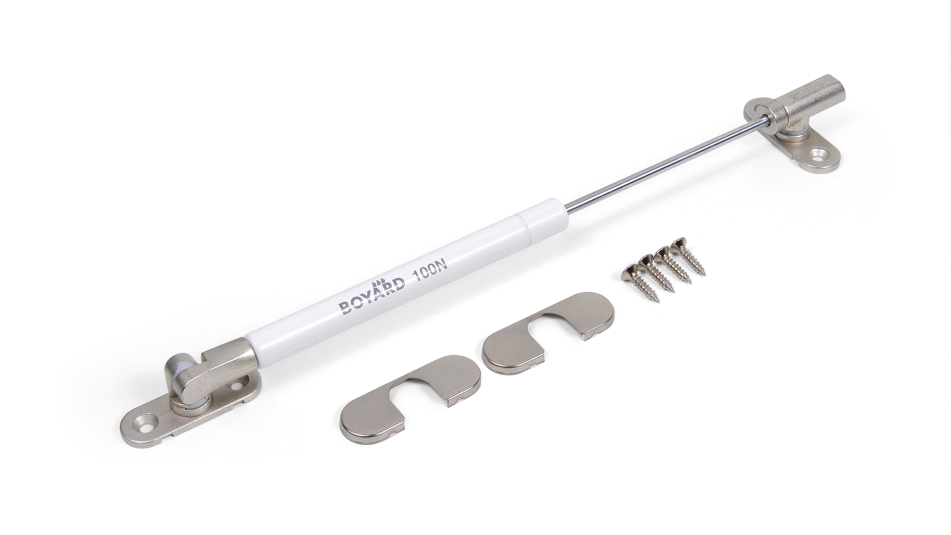 GL107 легко крепится к держателю фасада способом Clip-On — простым защёлкиванием. Декоративные заглушки в цвет газлифта (идут в комплекте) закроют крепёжные элементы и обеспечат завершённый, аккуратный вид.