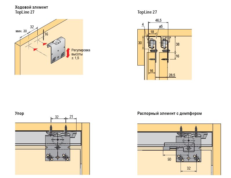 Ходовой профиль монтируется к верху шкафа за лицевой панелью.