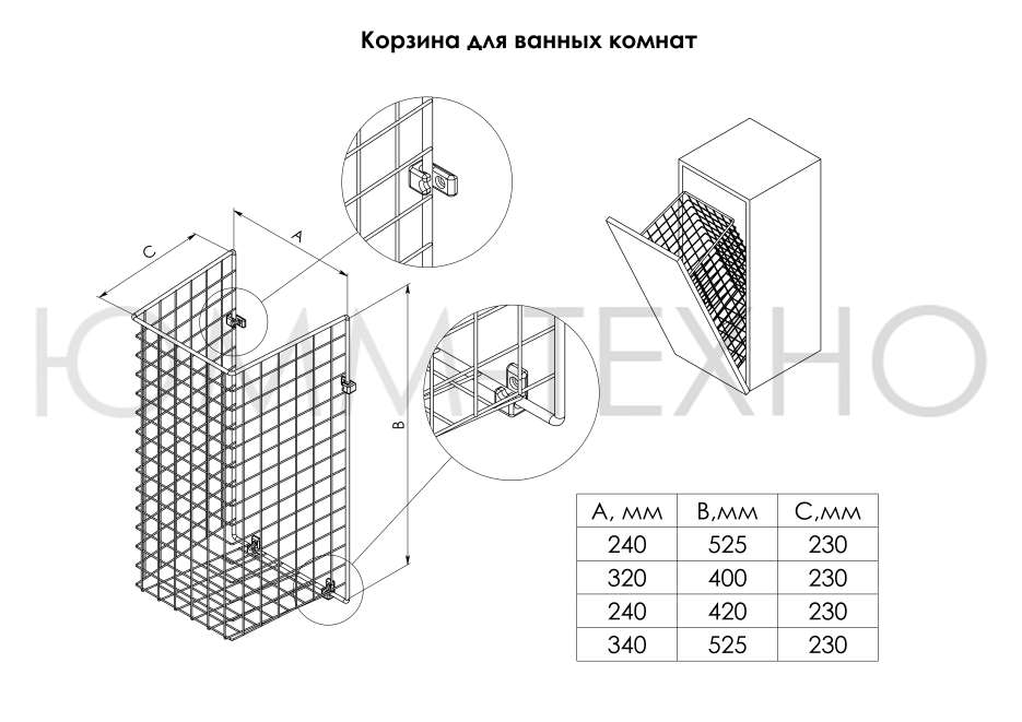 Корзина для белья сотовая 240*420*230мм хром