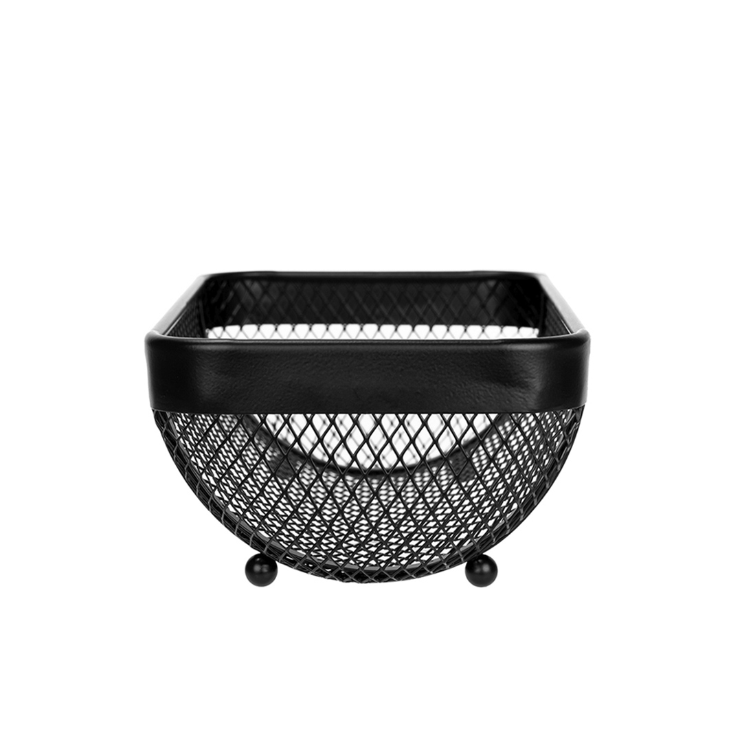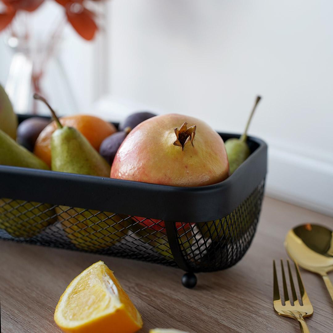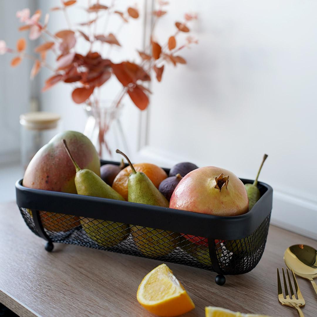 Фруктовница впишется в большинство современных интерьеров. Строгая геометрия и трендовый черный цвет делают ее заметной на фоне стола, при этом создают контраст между ней и яркими фруктами. Такой оптический эффект окажется особенно полезен владельцам кафе и ресторанов — получится увеличить средний чек со стола. Фруктовница качественно покрашена — порошковое покрытие устойчиво против жидкостей, трения и других механических воздействий. Оно же обеспечивает легкий уход за изделием — достаточно изредка протирать его влажной тканью.