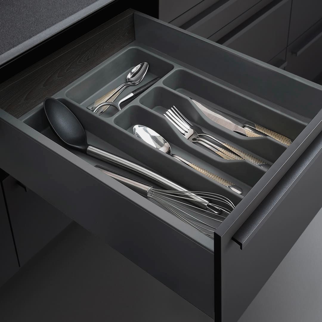 Лоток для столовых приборов в базу 400мм, вулканический серый — купить в Новосибирске по выгодной цене! Прочная и надежная мебельная фурнитура. Долговечность, удобство монтажа, отличное качество. Заказывайте в Мебельной Фабрике СИБИРЬ с доставкой по России!