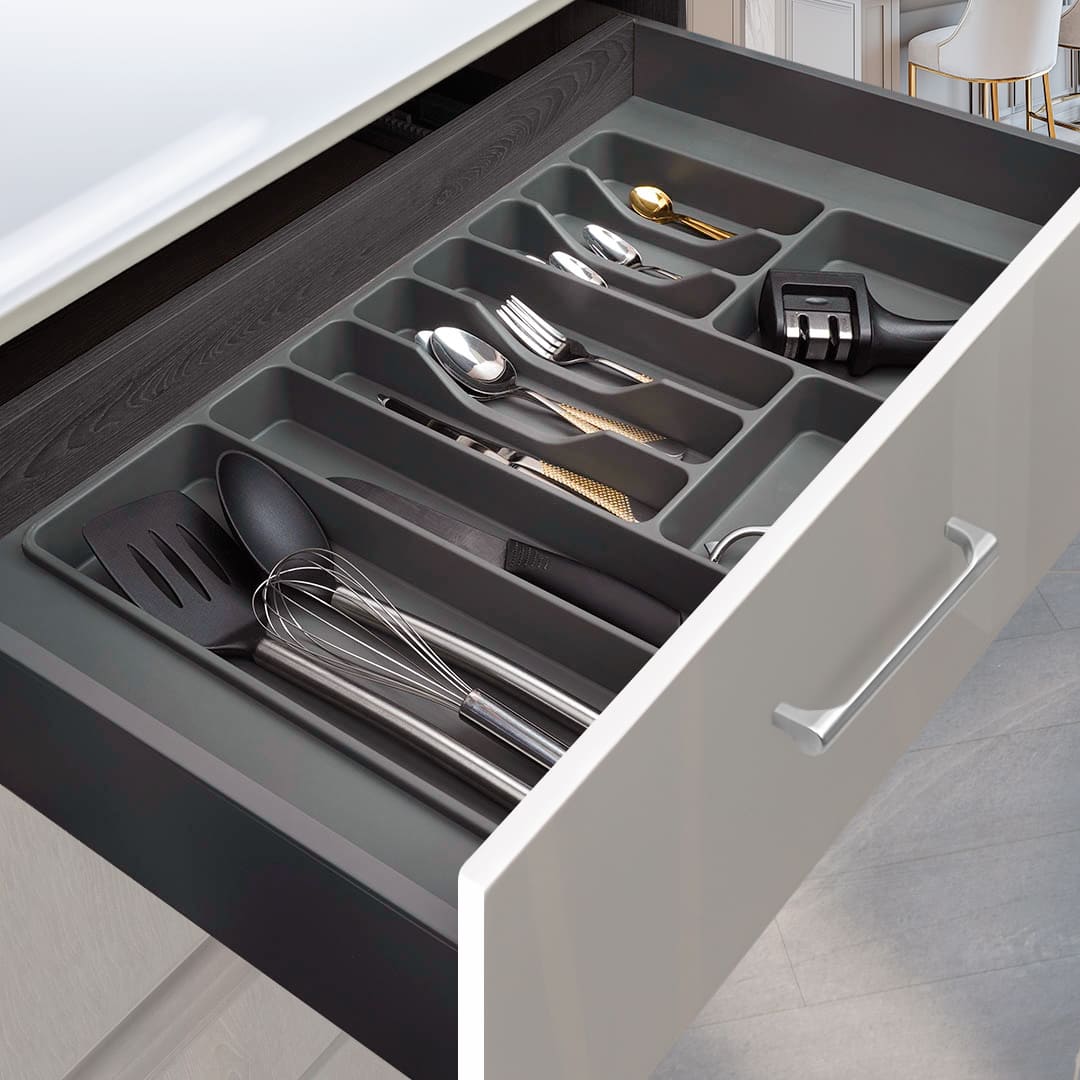 Лоток для столовых приборов в базу 800мм, вулканический серый — купить в Новосибирске по выгодной цене! Прочная и надежная мебельная фурнитура. Долговечность, удобство монтажа, отличное качество. Заказывайте в Мебельной Фабрике СИБИРЬ с доставкой по России!