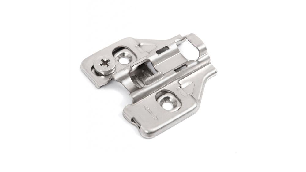Н5012 – трапециевидная планка с опцией эксцентриковой регулировки, созданная специально для петель линейки NEO. Планка позволяет в одно действие изменить положение фасада по высоте в диапазоне +/-2,5 мм. Крепёж возможно осуществить только с помощью мебельных саморезов, которые приобретаются отдельно. Если есть необходимость закрепить планку на евровинты, то для такого типа крепежа нужно выбрать планку H5032.