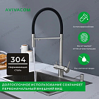 Смеситель 44*26 (сатин с черным гибким изливом и краном для питьевой воды), Сатин