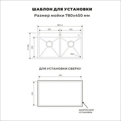 Кухонная мойка 780 × 450 мм с двумя чашами в цвете «Нано‑Чёрный» — функциональная модель из нержавеющей стали с инновационным нано‑покрытием.