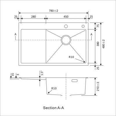 Размер чаши: 45 × 38 см — достаточно места для мытья крупной посуды и продуктов.