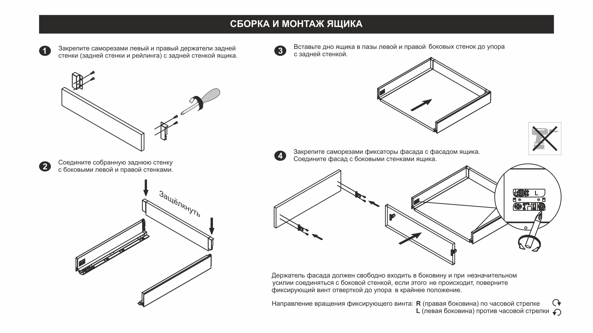 Для сборки выдвижного мебельного ящика на базе СТАРТ СОФТ SB18 необходимо самостоятельно изготовить фасад, заднюю стенку и дно ящика.