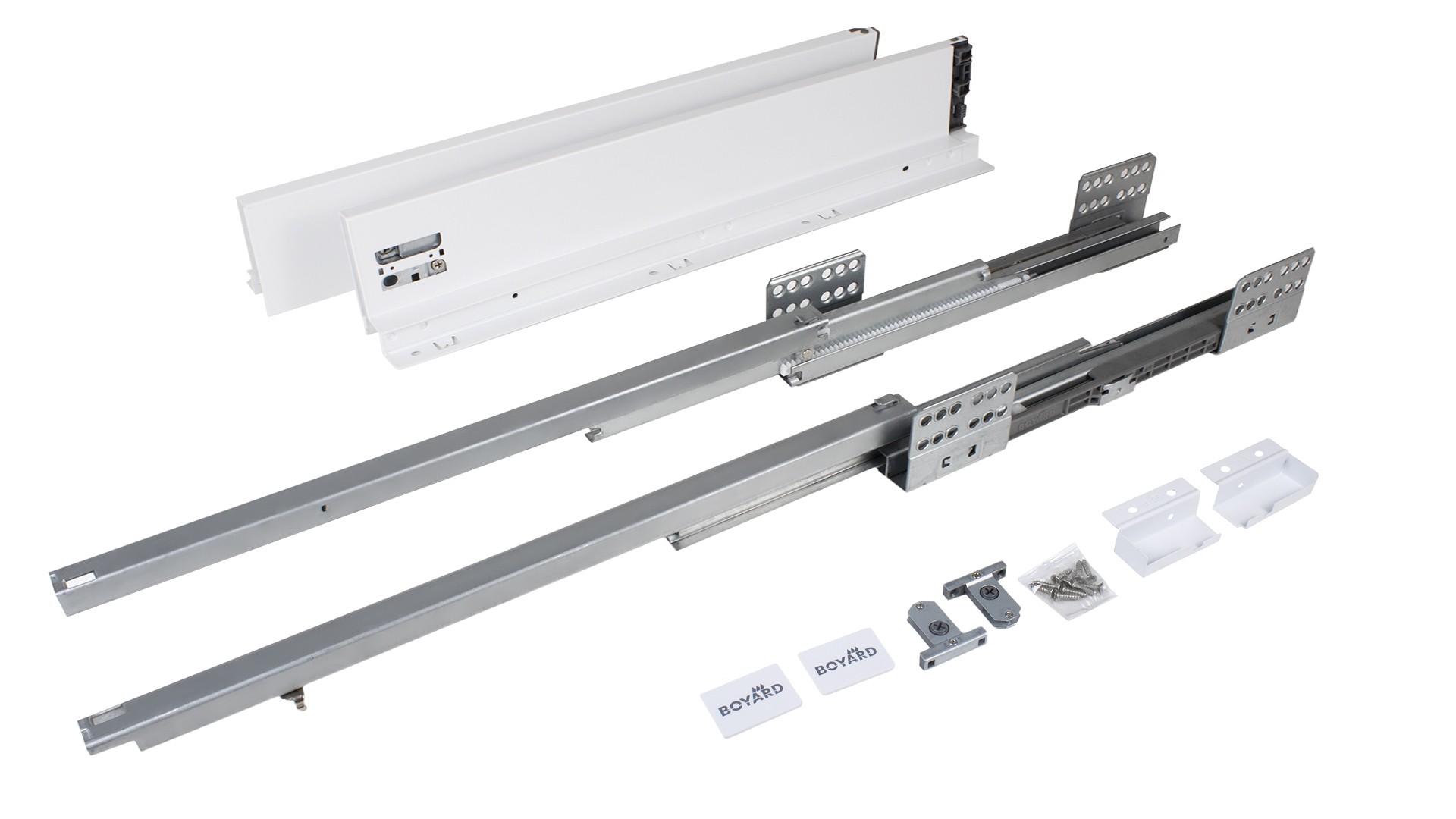 СТАРТ СОФТ SB18 — комплект систем выдвижения для сборки выдвижного мебельного ящика с прямыми боковинами стандартной высоты 86 мм для минимальной высоты проёма 115 мм.