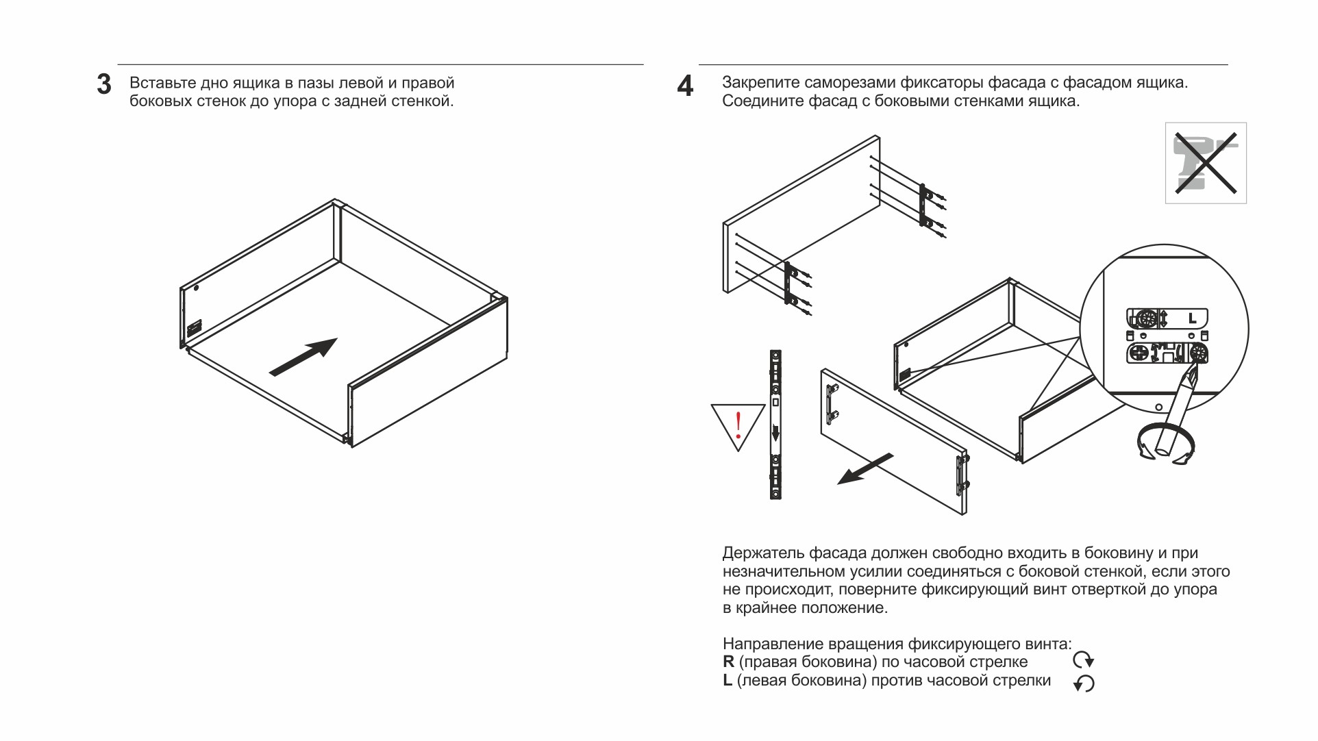 Для сборки выдвижного мебельного ящика на базе СТАРТ СОФТ ЭКСТРА SB21 необходимо самостоятельно изготовить фасад, заднюю стенку и дно ящика.