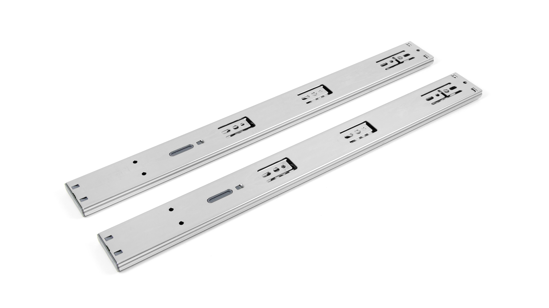 DB4525 выносливы и надежны, выдерживают до 30 кг (в зависимости от монтажной длины и с учетом веса самого мебельного ящика) и рассчитаны на 50 000 циклов открывания/закрывания. Представлены в широком диапазоне длин: от 300 до 550 мм (с шагом 50 мм), с полным выдвижением, начиная с длины 450 мм.