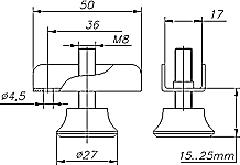 Опора регулируемая М8 с металлической скобой под плиту 16 мм с пяткой Ф27 мм черный