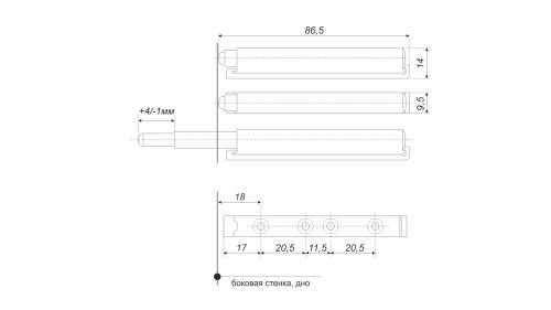 AMF10 – упор-защёлка для открывания и закрывания фасадов без мебельных ручек с помощью нажатия. Механизм предназначен для шкафов с распашными фасадами и совместим с любыми петлями без амортизатора. AMF10 может применяться с фасадами из различных материалов (дерева, пластика, стекла, с алюминиевым профилем) независимо от веса и габаритов. Для открывания/закрывания среднестатистического фасада на двух петлях достаточно одного механизма AMF10.