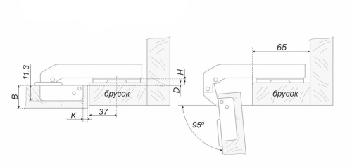 Петля H74002/0612 (407 AЕ d5.5)-150 для фальшпанели, без доводчика
