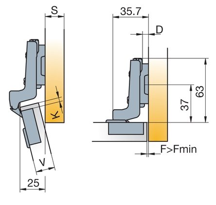 - система крепления петли к монтажной планке - clip-on (защелкивание);