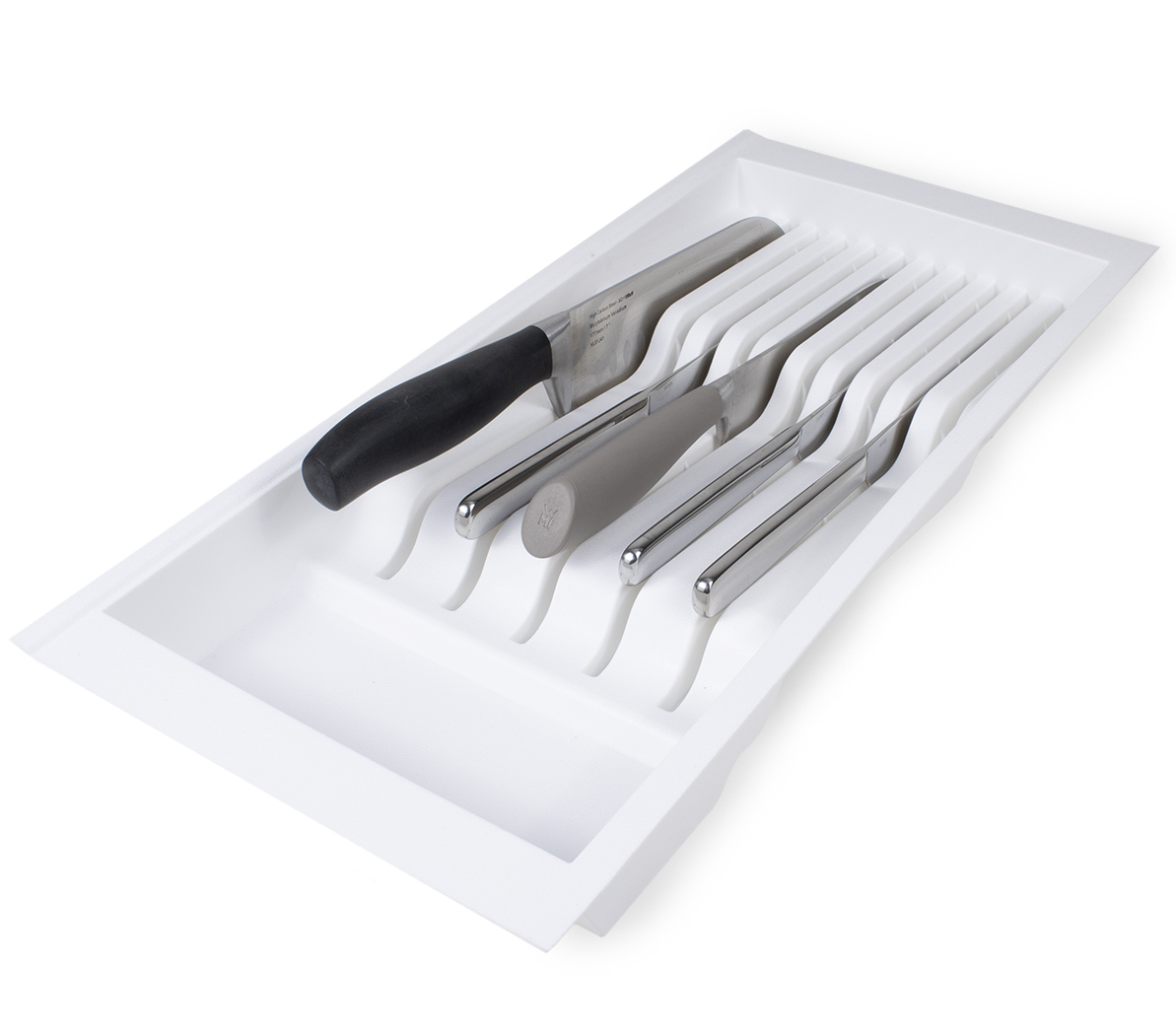 Эргономичная конструкция поддона рассчитана на размещение 5 больших и 6 маленьких ножей.