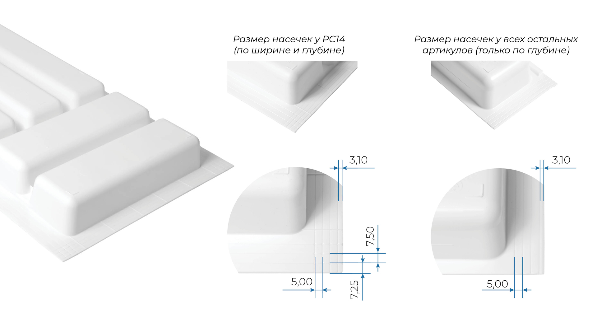 C одной стороны конструкции PC12 выступает плоская часть, а с другой специальный П-образный паз, который обеспечивает аккуратное и надёжное соединение блока с другими поддонами линейки: PC10, PC11, PC13, PC14 (обязательный элемент для создания любого комплекта BLӦKI), PC15.