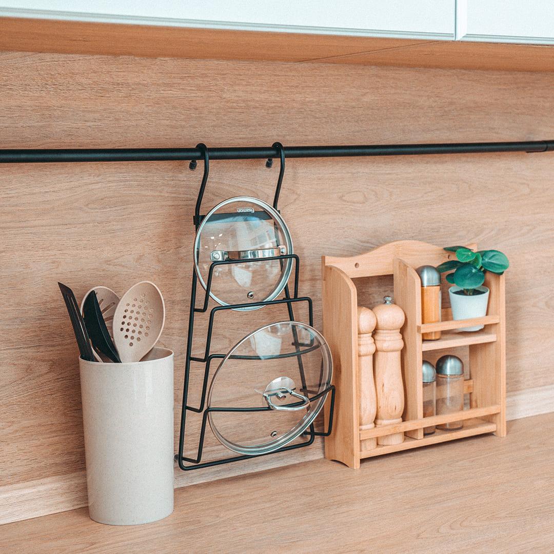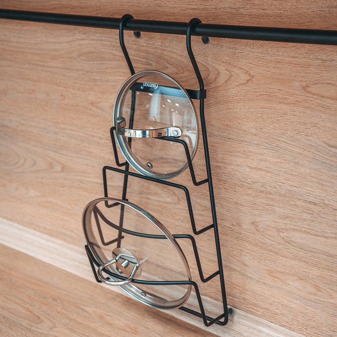 Полка освобождает место в шкафах и ящиках, обеспечивает быстрый доступ к крышкам и поддерживает порядок на кухне. Лаконичный дизайн впишется в современный интерьер, а прочная стальная конструкция гарантирует долговечность использования.