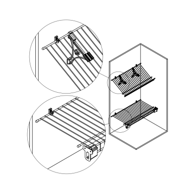 2) Кронштейн и клипса – монтаж полки под углом 45% для хранения обуви.