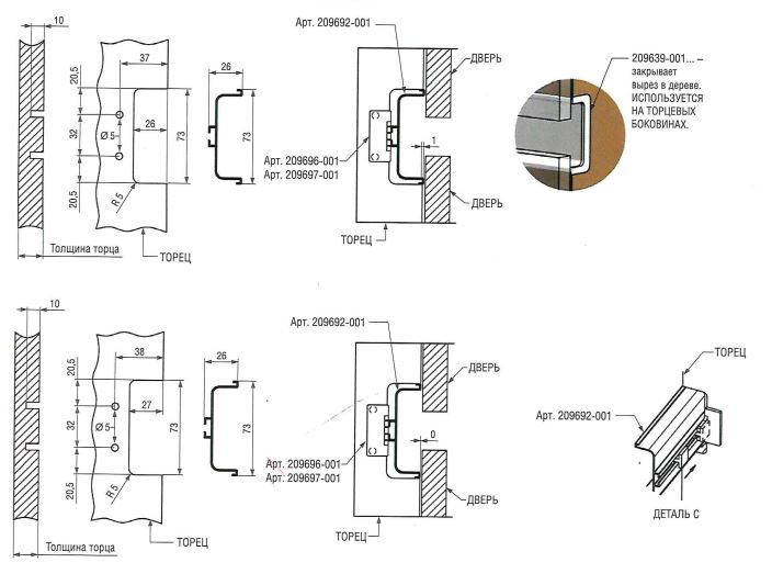 SlideOn 2333-T42/26-K16, петля для вкладных дверей, угол открывания 95 градусов