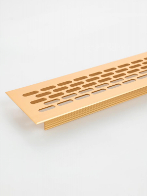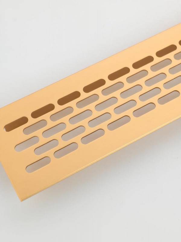Вентиляционная решётка размером 484 × 60 мм в цвете «матовое золото» — функционально‑декоративный элемент для организации воздухообмена в помещении.