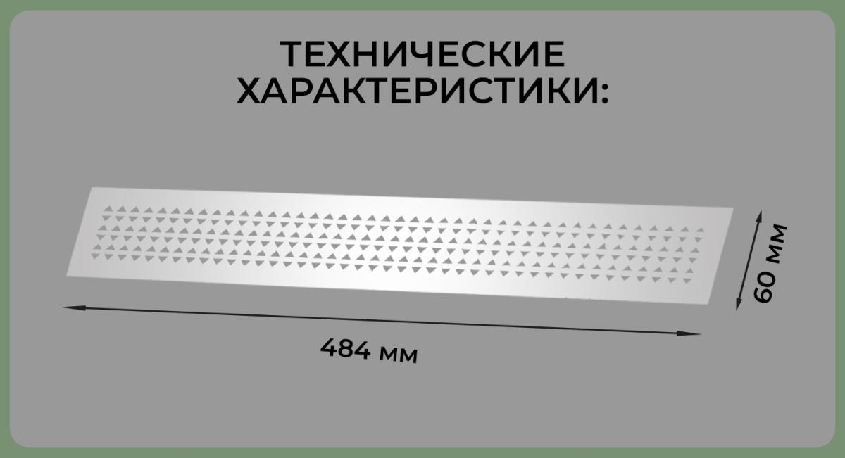 Размеры: 484 × 60 мм (длина × ширина) — соответствуют стандартным проёмам, что упрощает монтаж без дополнительной подгонки.