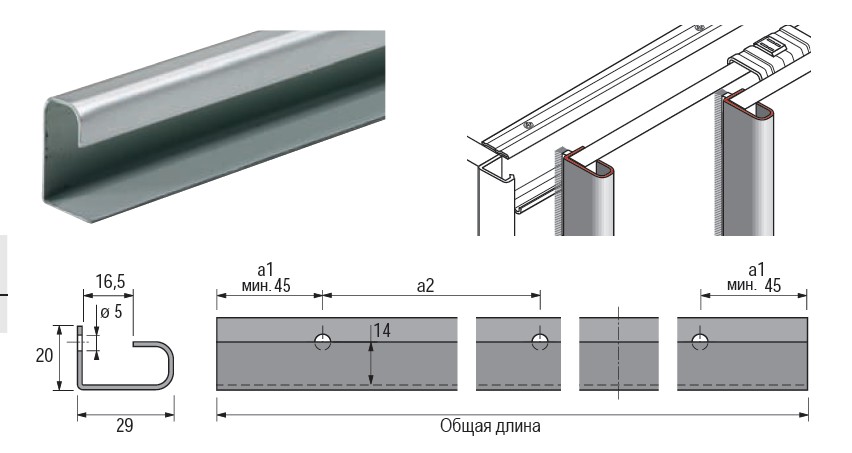 Ручка-профиль для TopLine L, толщина двери 18-19 мм, длина 2500 мм, серебристая сталь — купить в Новосибирске по выгодной цене! Прочная и надежная мебельная фурнитура. Долговечность, удобство монтажа, отличное качество. Заказывайте в Мебельной Фабрике СИБИРЬ с доставкой по России!