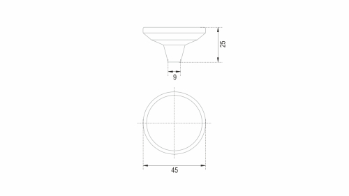 Ручка для мебели и дизайна диаметром 45 мм может использоваться самостоятельно на фасадах любой ширины.
