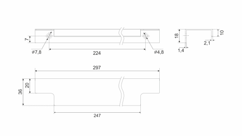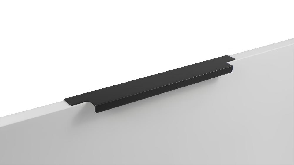 Ручка имеет богатое разнообразие длин. В зависимости от длины модель можно разместить двумя способами — «в размер» фасада и по центру широких фасадов (как большой «язычок»).