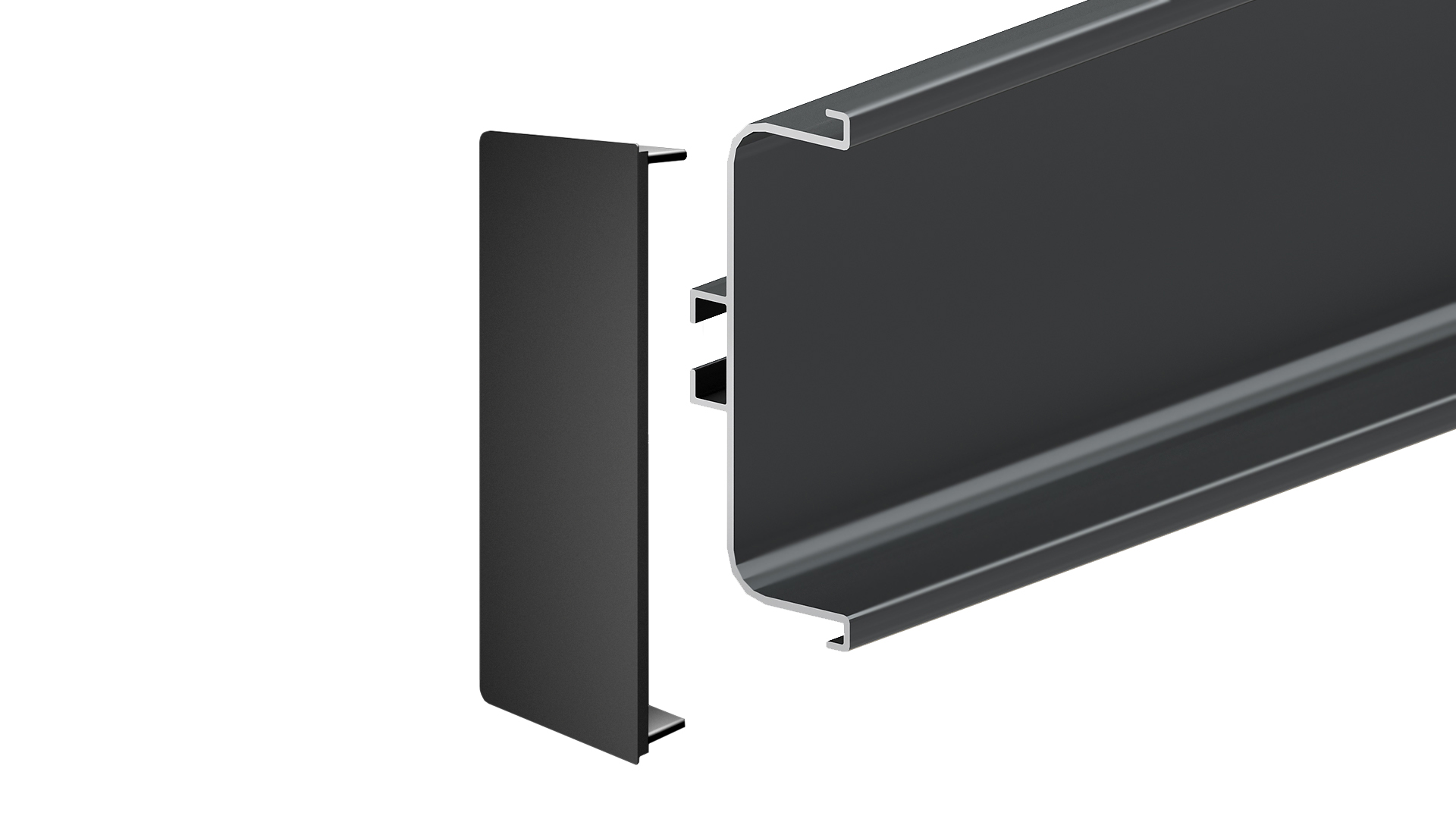 RZ050.04 - закрытые заглушки из цинк-алюминия для стильного и эстетичного оформления среза горизонтального профиля GOLA BALANCE по краям гарнитура, на стыке с посудомоечной машиной, духовым шкафом или мебельным модулем.