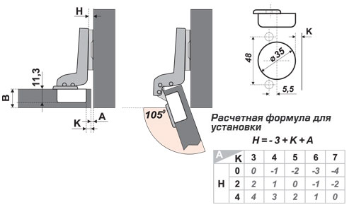 Петля SlideOn 2333, угол 95°, чашка TH42 Ø35, вкладная навеска (B-1, 5)