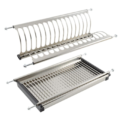 Двухуровневая сушка для посуды быстрого монтажа для современных кухонных гарнитуров позволяет размещать значительное количество вымытой посуды. Модель оснащена стальным поддоном для сбора стекающих с посуды капель воды. Одно из достоинств сушки – быстрый монтаж: конструкция монтируется в предварительно просверленные отверстия. Материал конструкции – нержавеющая сталь и пластик.