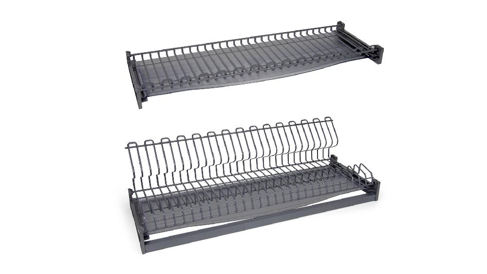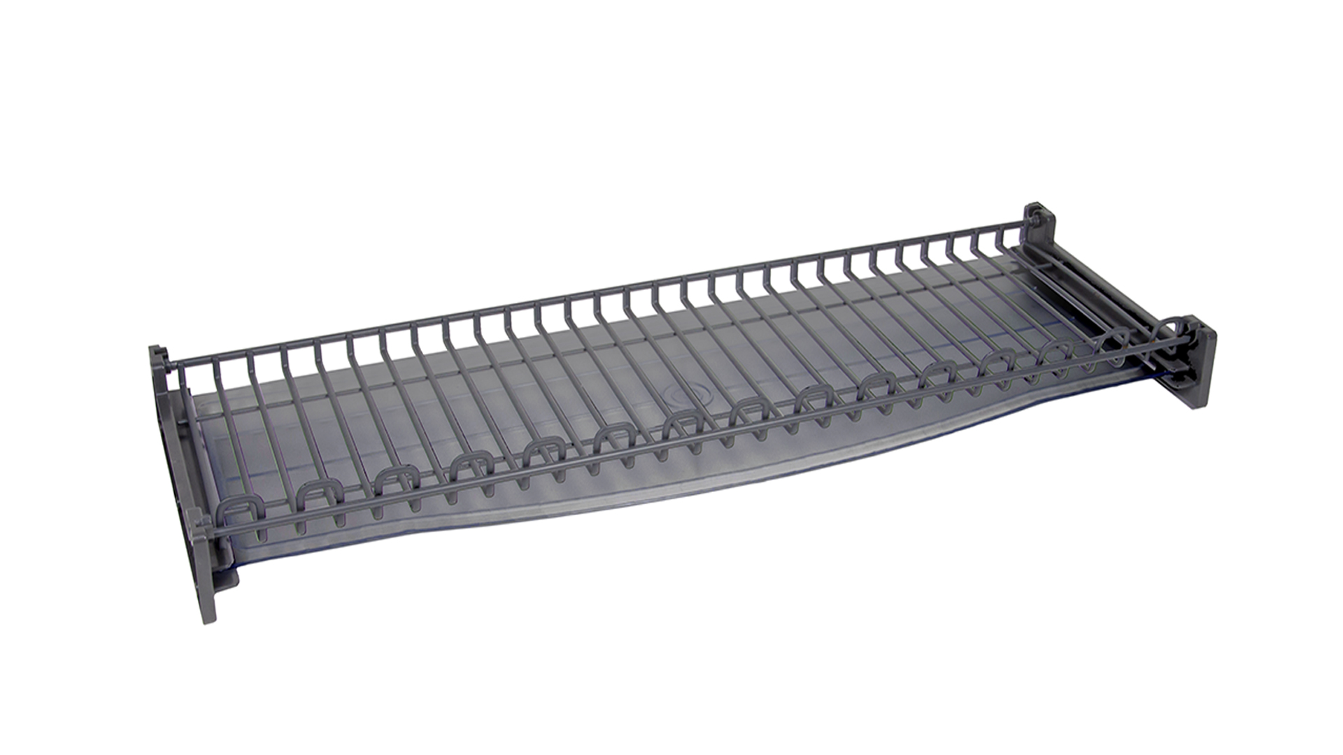 STUDIO FL 16 SU09 — сушка для посуды в верхнюю базу для мебели из плит толщиной 16 мм. Модель выполнена в современном дизайне из плоского стального прутка в нанопокрытии графитового цвета с эффектом самоочищения и водоотталкивания. Такое покрытие обеспечивает повышенную износостойкость, ударопрочность и устойчивость к коррозии.