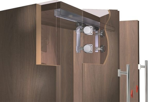 Фурнитура подходит для 2-створчатых дверей, тем самым обеспечивая экономию пространства, например, в спальнях или офисах.