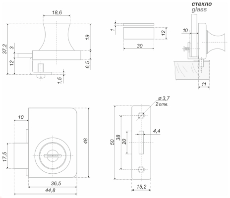 Тип: Накладной замок для стеклянных дверей толщиной до 8мм.